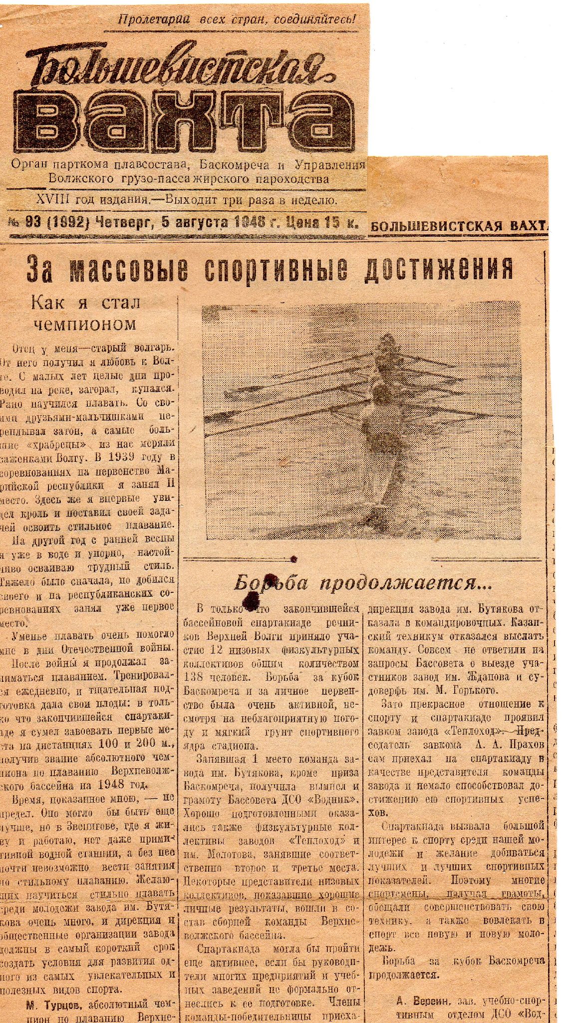 результаты городов: Горький – 1 место, награжден переходящим призом I степени Роскомфизкульта, Куйбышев – II место, Саратов 3 место