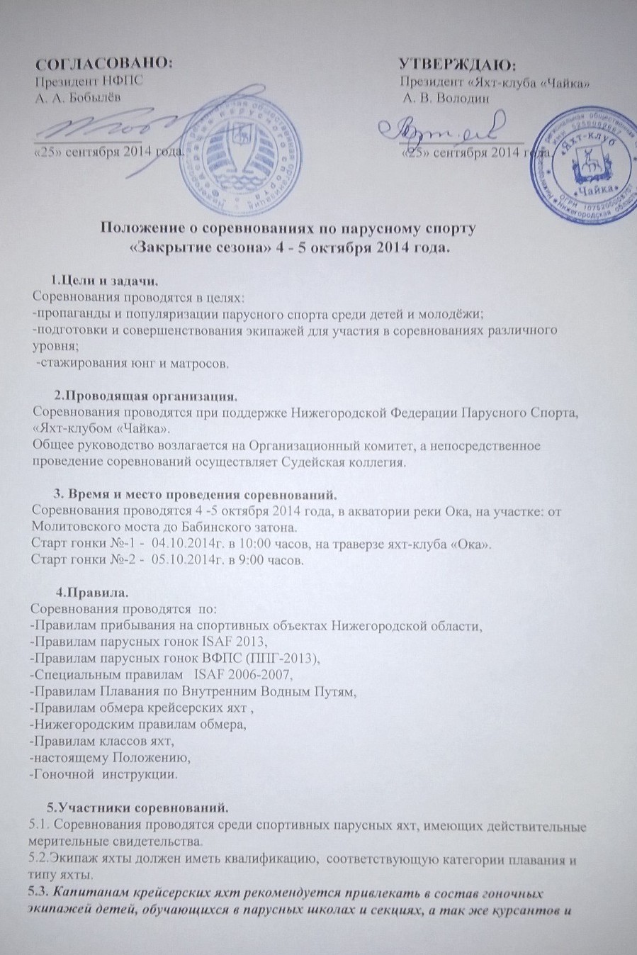 утвердить на собрании капитанов, которое состоится в 10:30 4 октября 2014 года на причалах яхт-клуба "Ока".