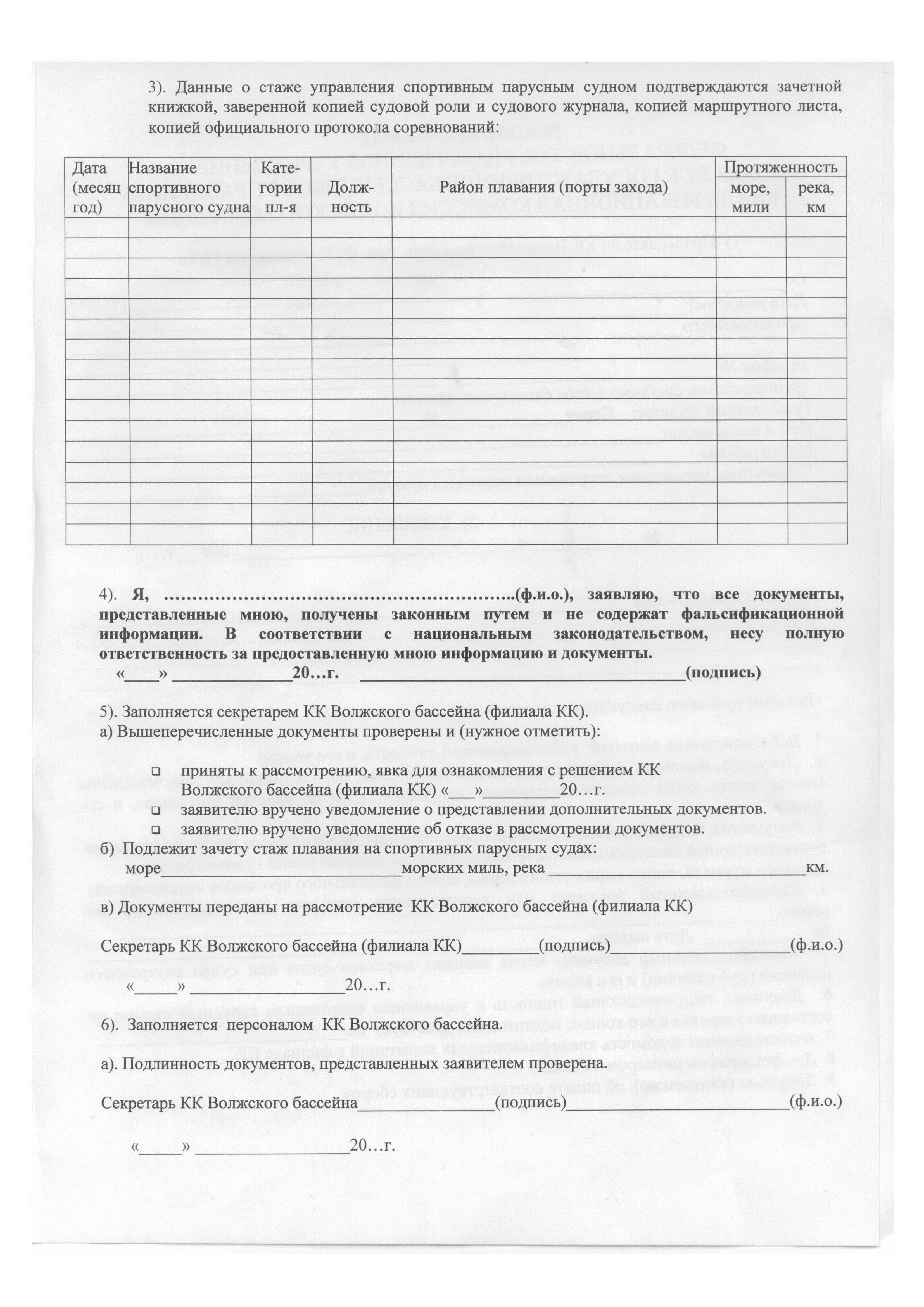 Заявление в Квалификационную комиссию Волжского бассейна ВГБУ с приложением документов согласно пунктам 2.1-7