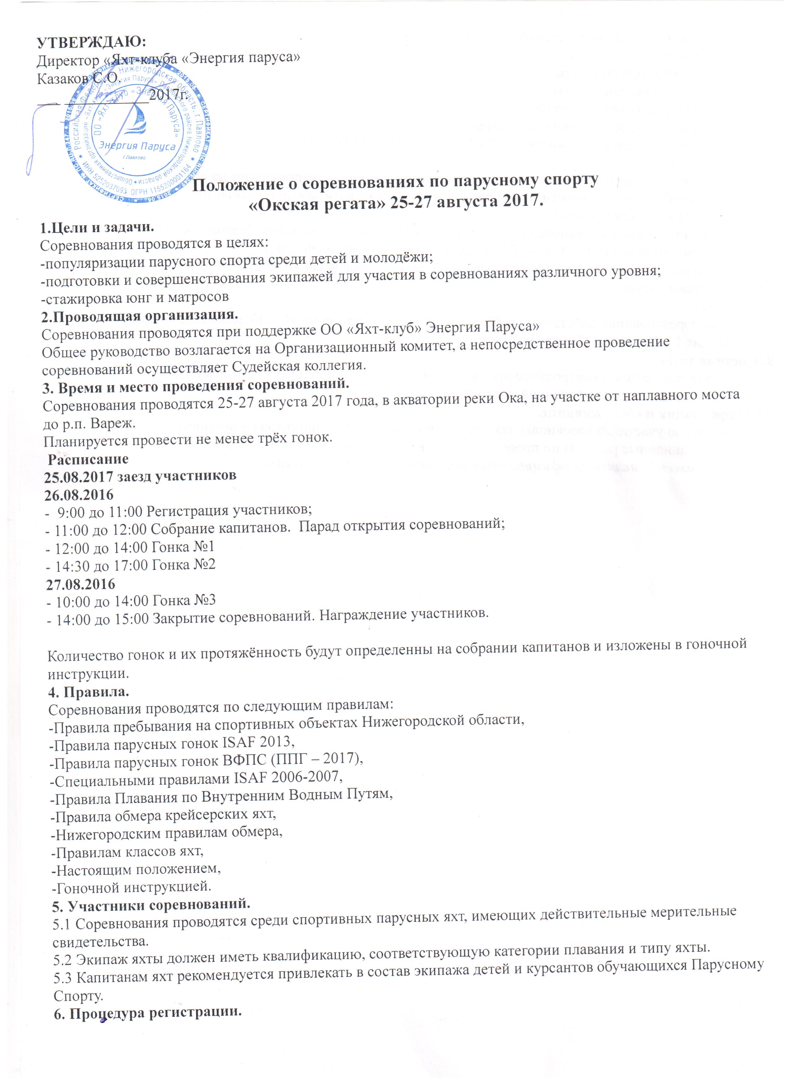 02.08.17 ПОЛОЖЕНИЕ Окской регаты, 25-27 августа, Павлово
