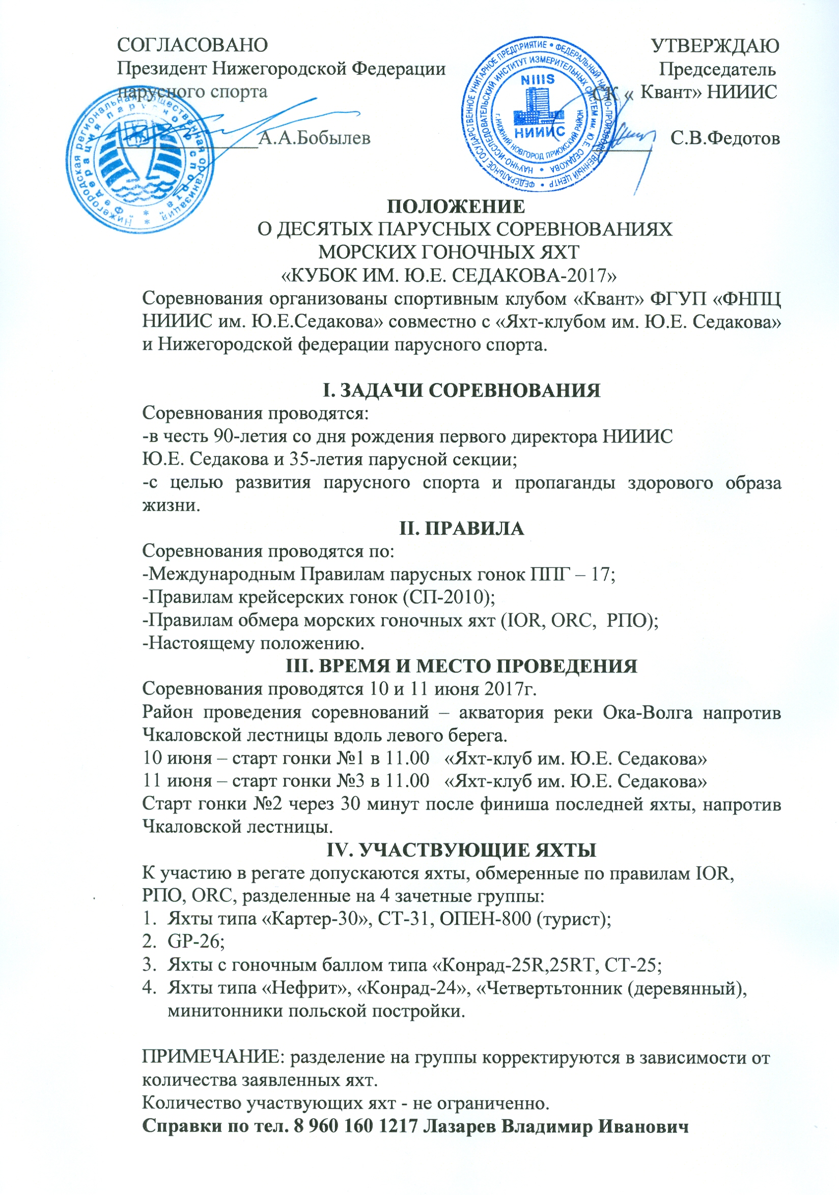 24.04.17 ПОЛОЖЕНИЕ регаты "Кубок им. Ю.Е. Седакова-2017"