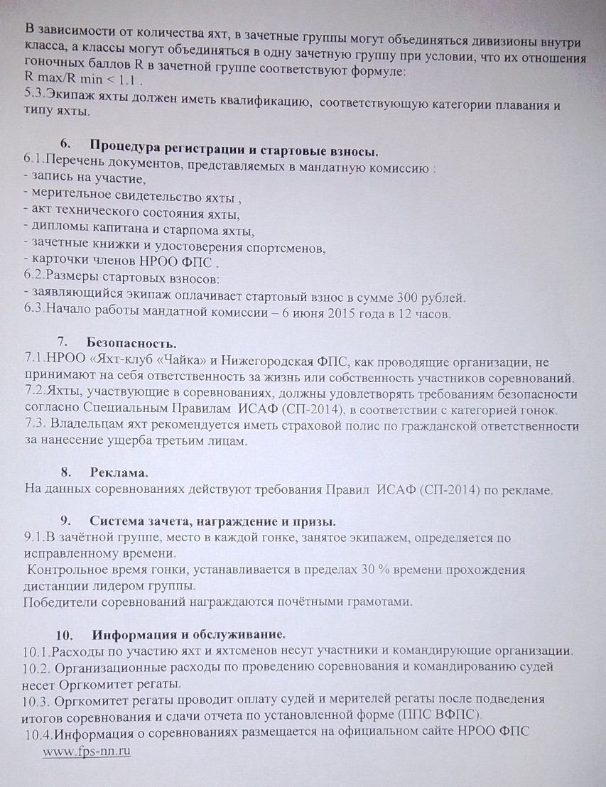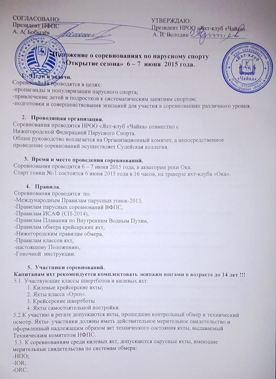 30.05.15 ПОЛОЖЕНИЕ Соревнования по парусному спорту "Открытие сезона", 6-7 июня 2015 года