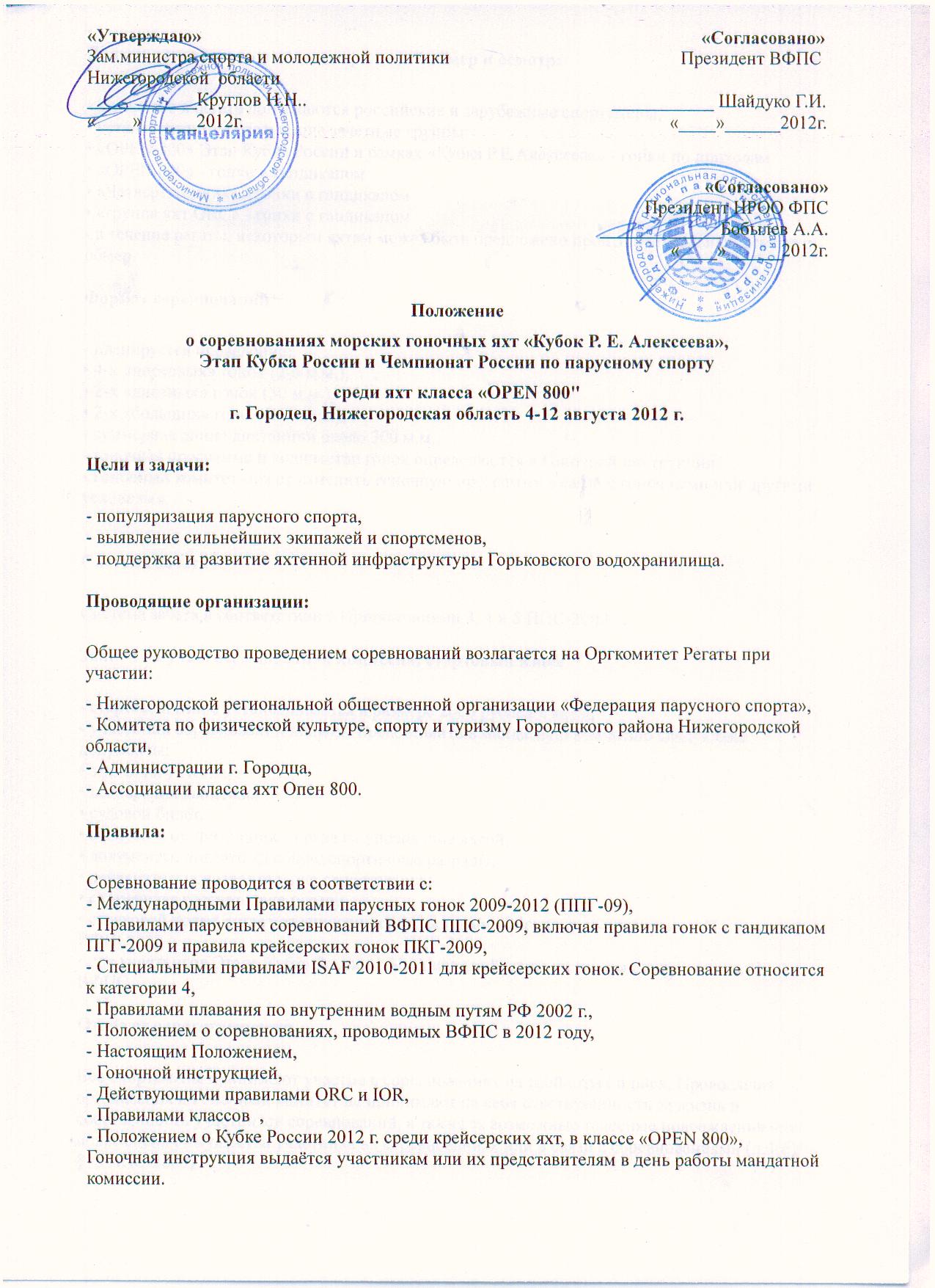 Анонс регаты "Кубок Алексеева 2012"