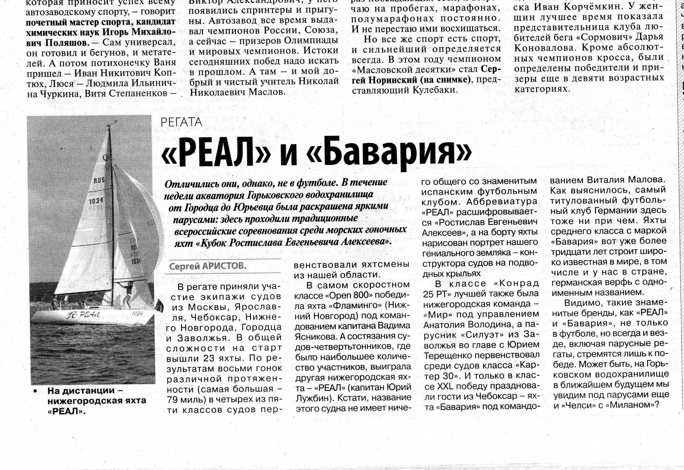 СМИ о нас: "РЕАЛ" и "Бавария", газета "Нижегородская правда", корр. Сергей Аристов