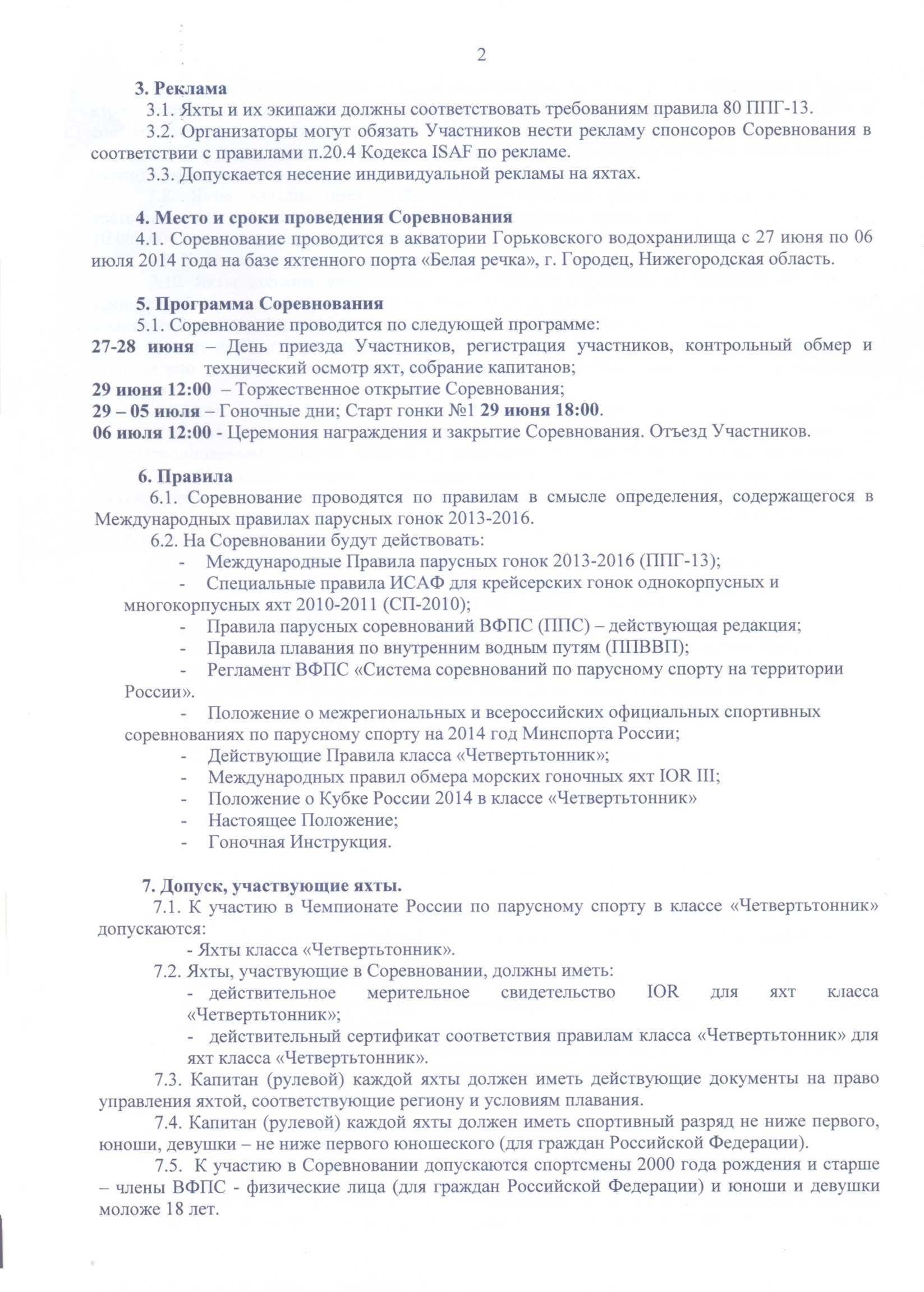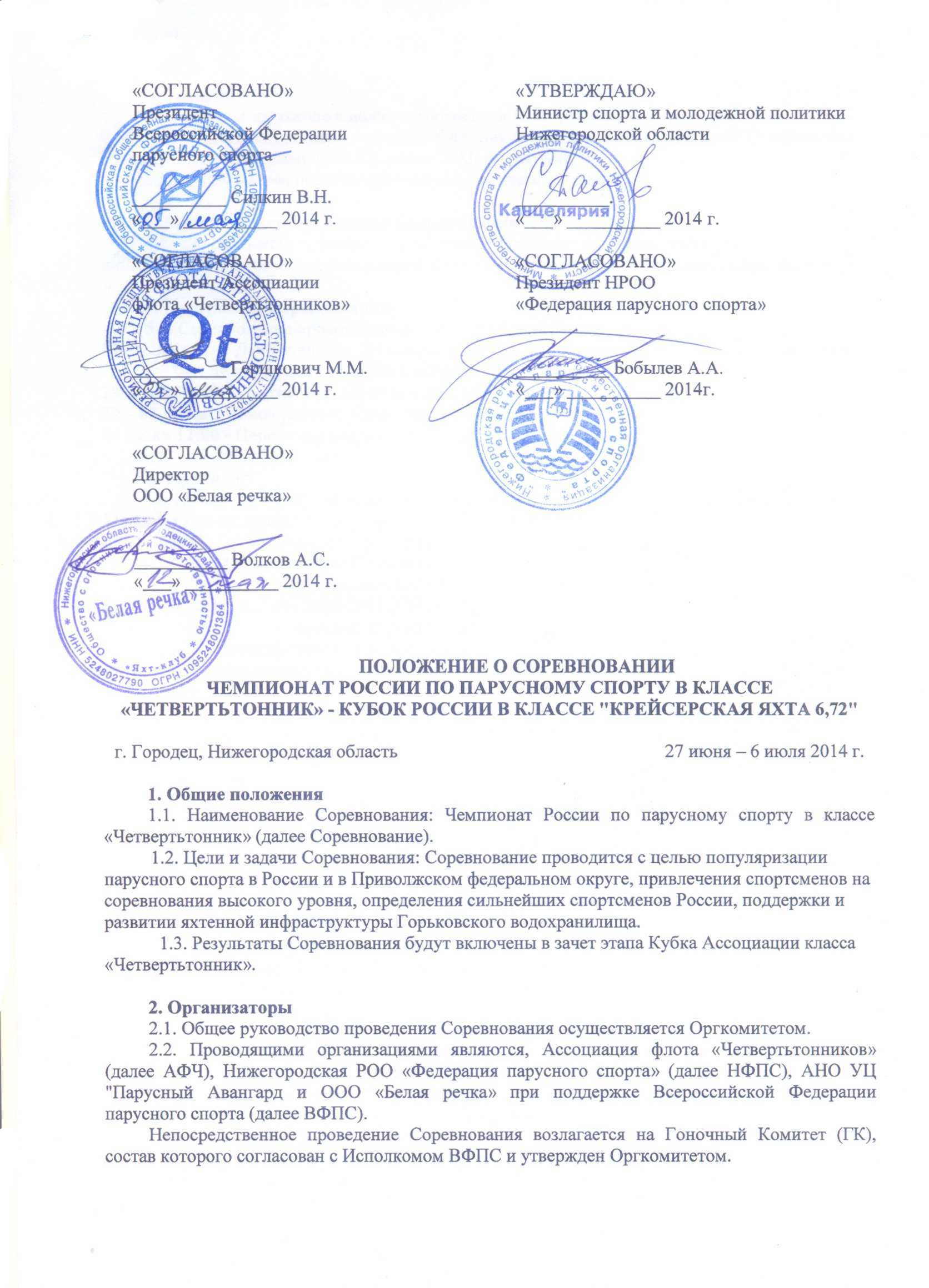 ПОЛОЖЕНИЕ О СОРЕВНОВАНИИ ЧЕМПИОНАТ РОССИИ ПО ПАРУСНОМУ СПОРТУ В КЛАССЕ «ЧЕТВЕРТЬТОННИК» - Кубок России в классе "Крейсерская яхта 6,72".