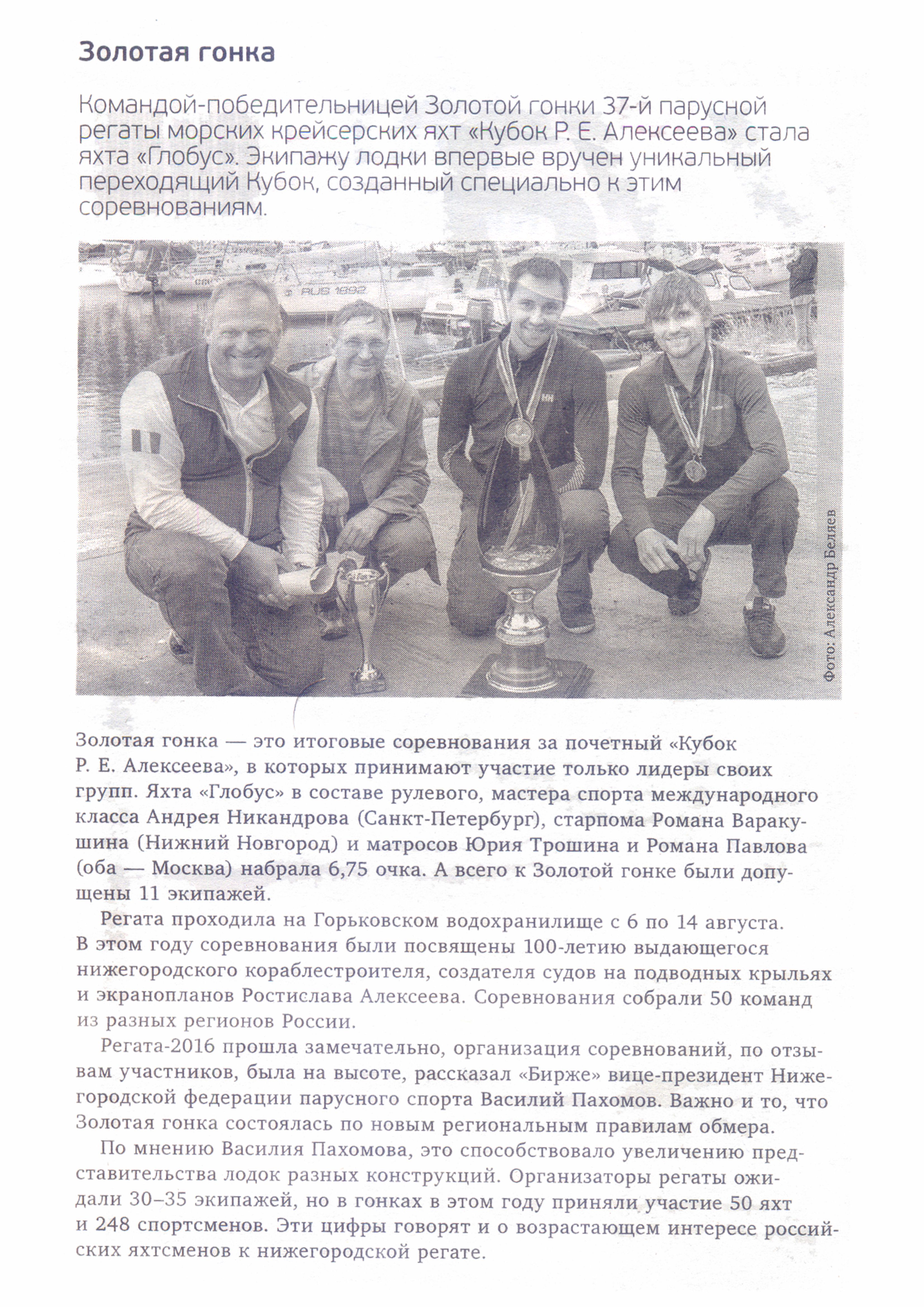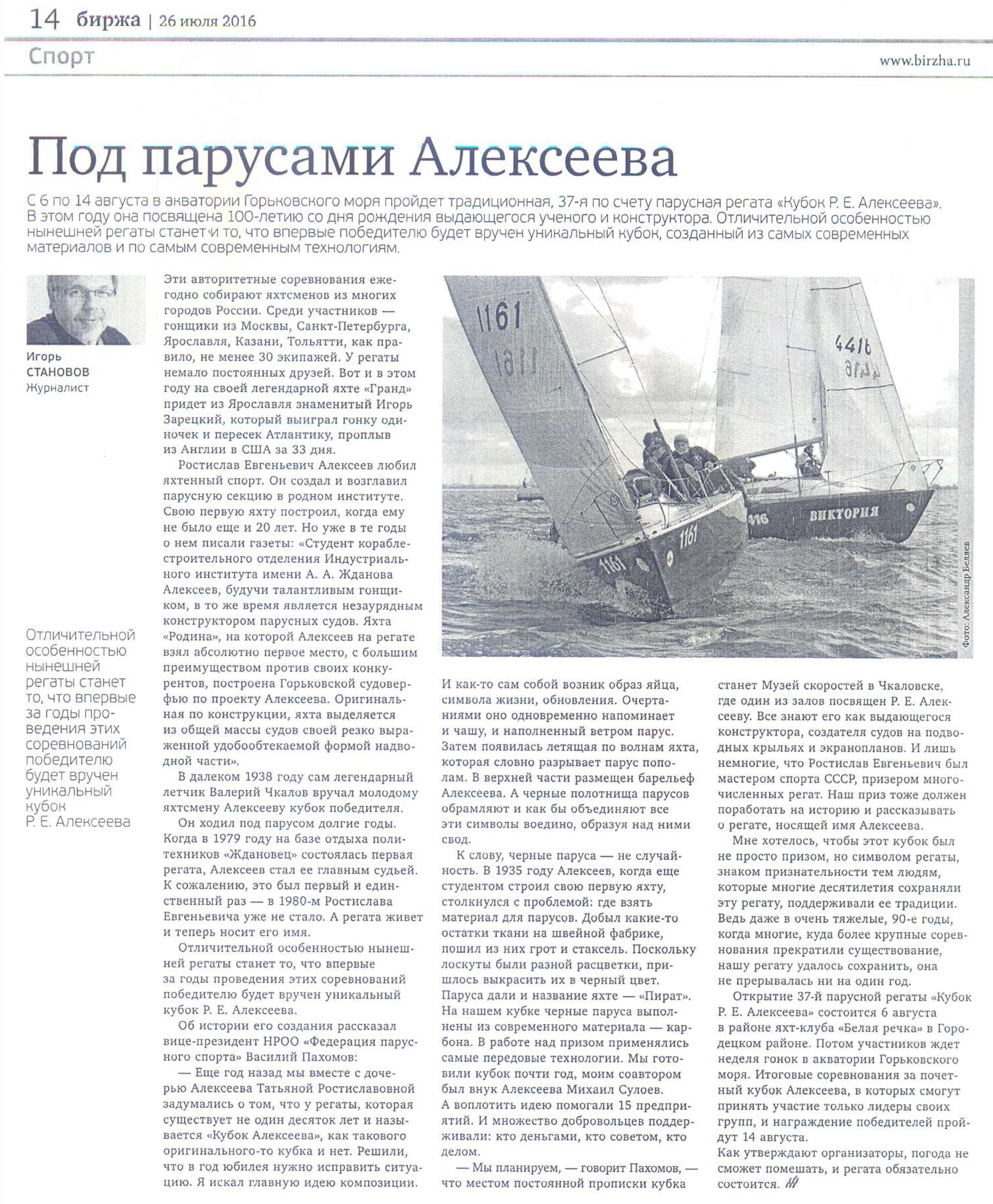 Газета "Биржа" 26 июля 2016 "Под парусами Алексеева"