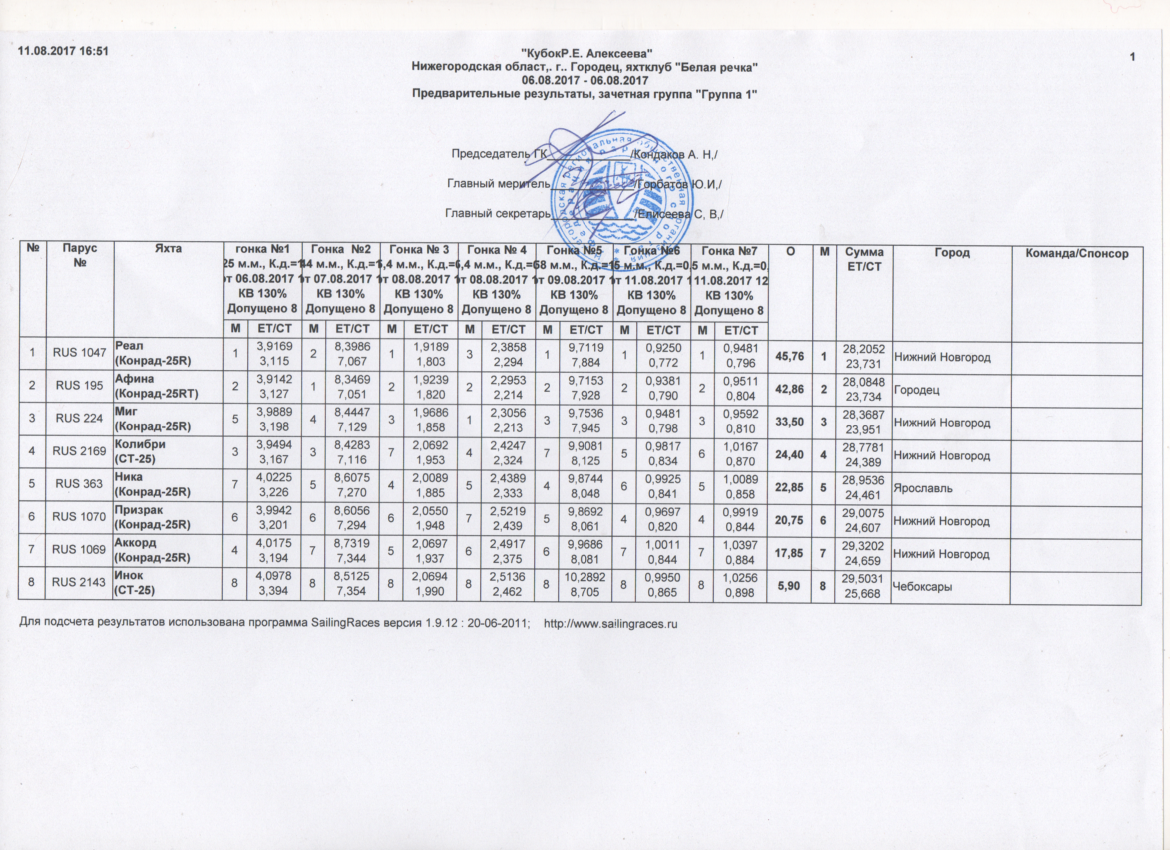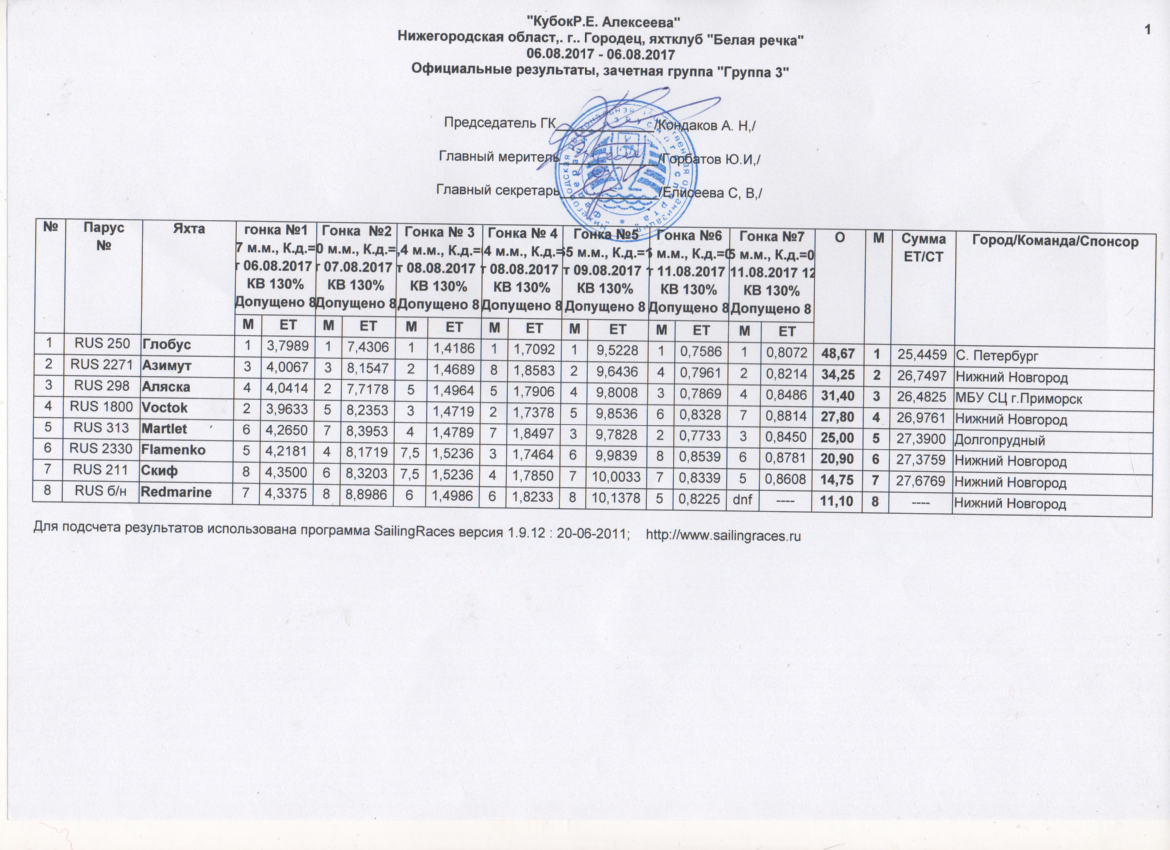 Соревнования по парусному спорту "Кубок Р.Е. Алексеева", 5-12 августа 2017, яхт-клуб "Белая речка", Горьковское вдхр.